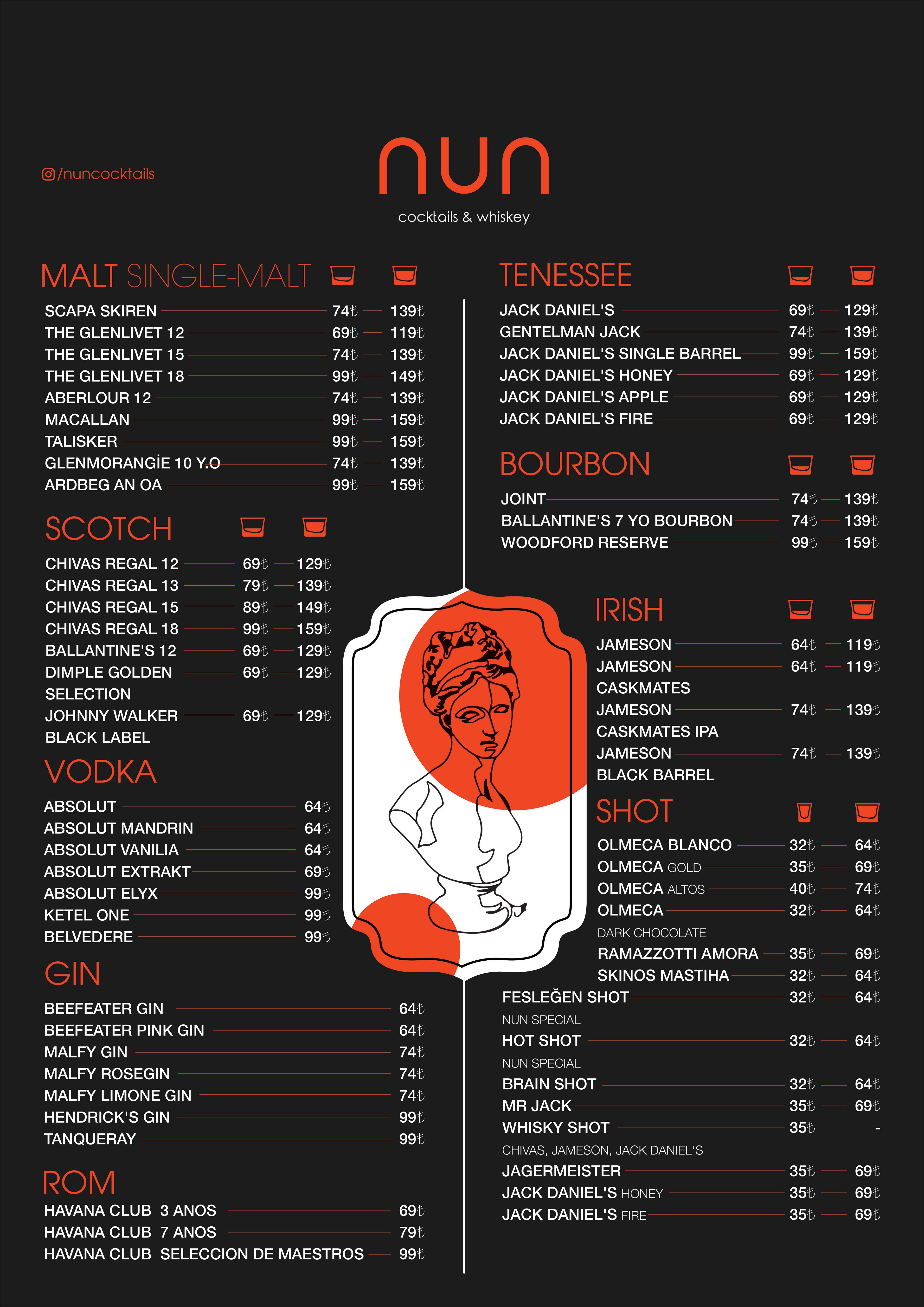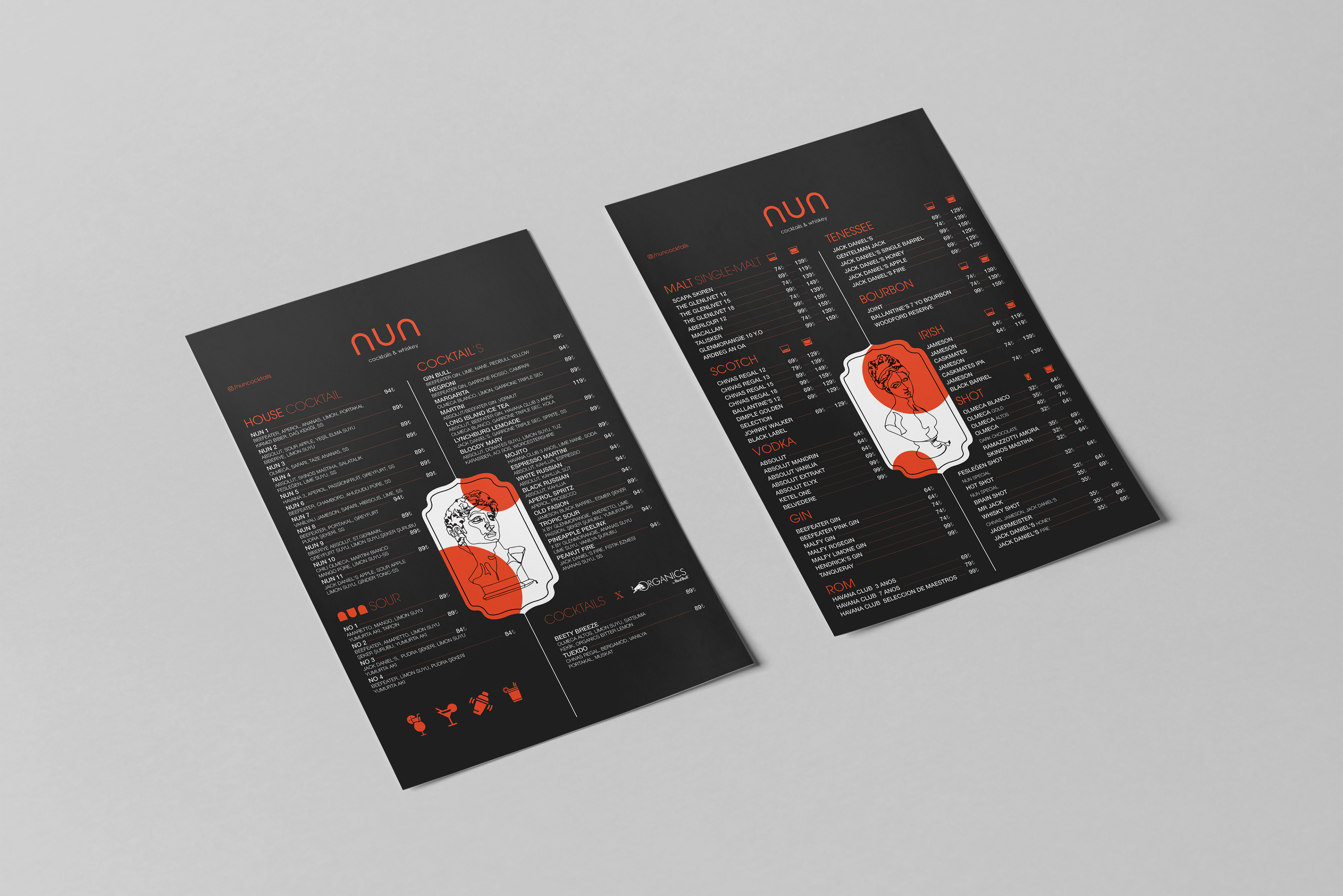 Nun Cocktails & Whiskey - Menu design